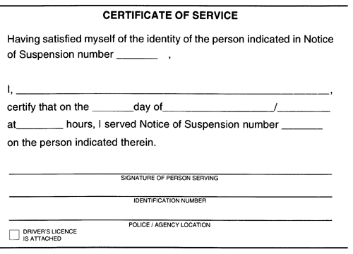 45.01 The following Certificate of Service is prescribed for the purposes of section 234 (4) (c) of the Act: