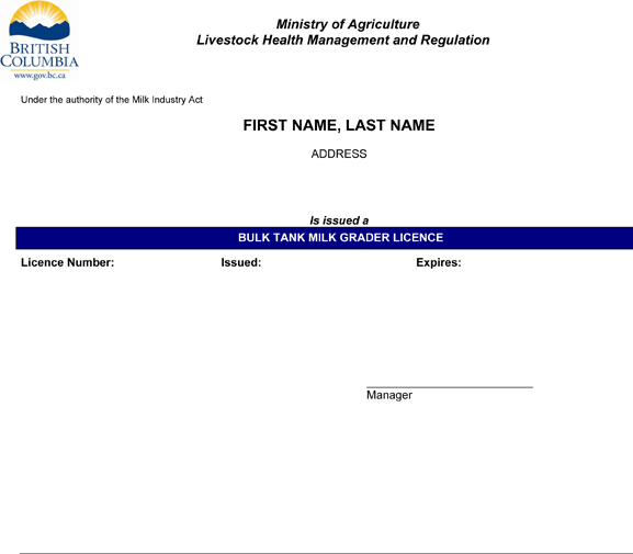 | 2 | Bulk Tank Milk Grader Licence | $20.00 |